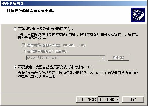在第五步中選擇“不要搜索。我要自己選擇要安裝的驅(qū)動(dòng)程序”然后點(diǎn)“下一步”。